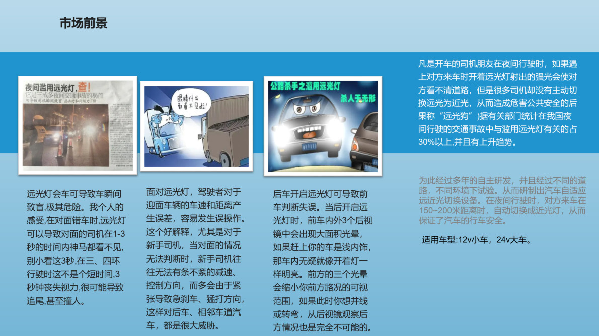 4.防抢电功能:在夜晚时,当汽车启动时,车灯自动关闭,启动后,车灯自动打开。