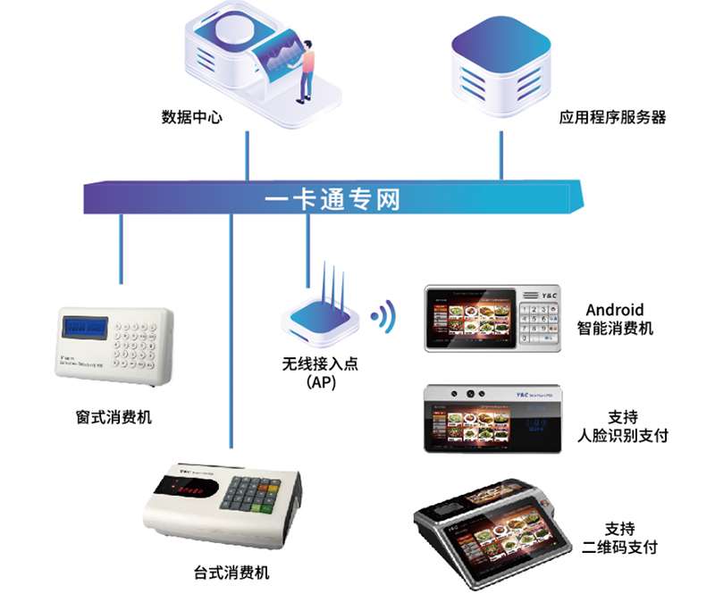 对校园消费机、订餐进行参数设置、状态查询、数据查询、远程管理等操作